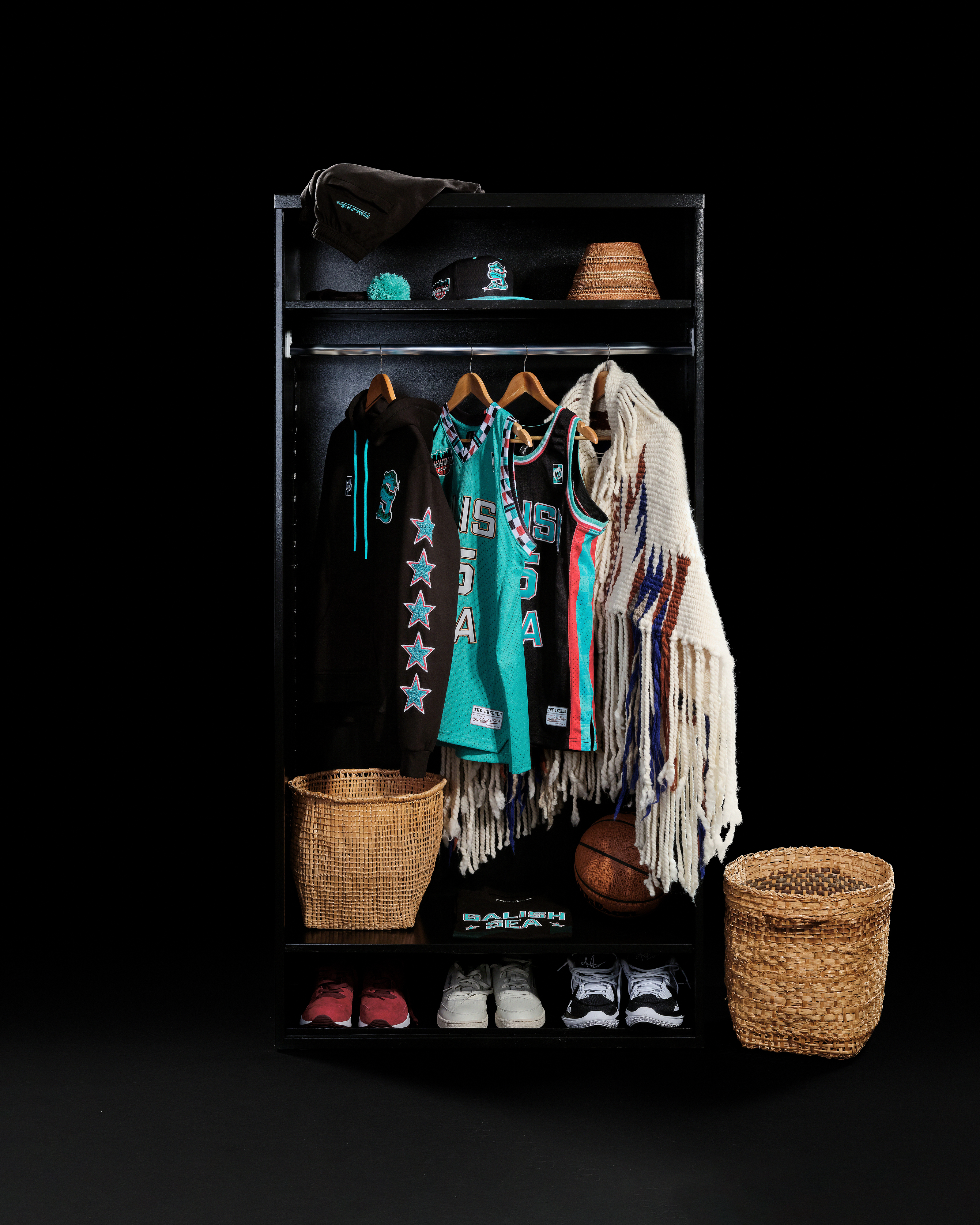 Set design and styling for SECTION 35 x Debra Sparrow by Mitchell & Ness campaign images.